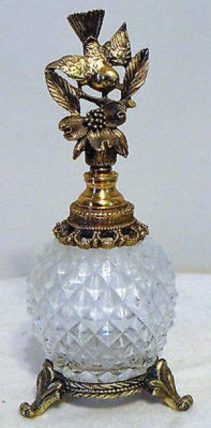 Beautiful 1930s MATSON Perfume Bottle, Gold Gilt Ormolu, Bird Flower