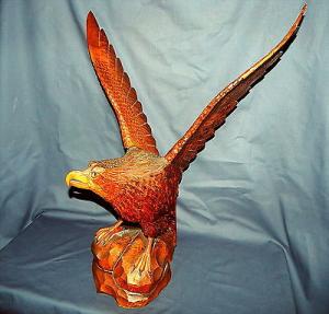 LARGE 25" Tall19th Cen. BLACK FOREST CARVING of EAGLE w/Outstretched Wings