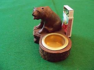 Vintage Black Forest Carved Bear/ Matchbox/ Smoke Stand/ Ash Tray, Switzerland .