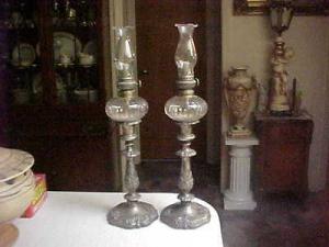 TWO OLD P&A MFG CO, VICTOR 1890'S SILVERPLATED OIL LAMPS W/ ORIGINAL PARTS