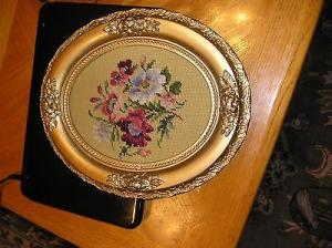 ANTIQUE victoian OVAL WOOD FRAME WITH ANTIQUE HAND STICH FLORAL,LOOK,NICE PIECE