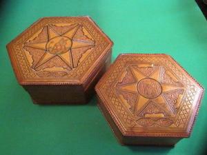 A Pair of Antique Leather Egyptian Revival Nesting Hexagonal Boxes