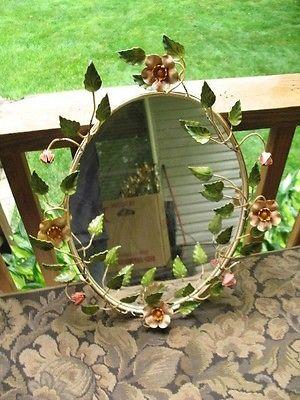 Vintage Mid Century Italian Tole Mirror-Flowers