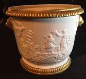 RARE chelsea house italian porcelain Oriental TWO Scene Gild Cashe pot LION MINT