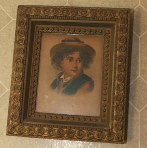 Antique 19th C Gesso Cast Gold Picture Frame w/ Print ~8"x10"