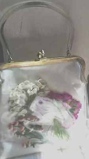 Vintage Lucite Handle and Plastic Covered Floral Design with Brass Frame