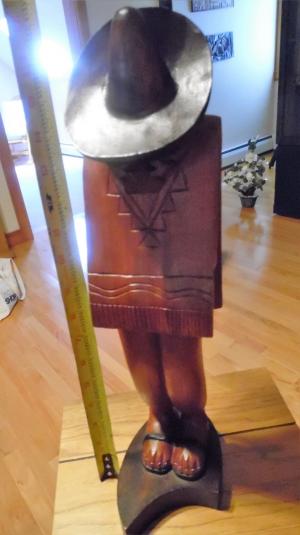 VINTAGE J. PINAL WOOD CARVED 17" MEXICAN MAN STANDING WITH SOMBREO RESTING