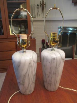 Vintage Pair SOLID MARBLE BEDSIDE TABLE LAMPS MCM Hollywood Regency Eames Era NR