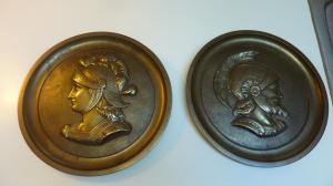antique 19th century heavy solid bronze hi relief warrior Neo classical Plaques