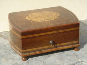 ANTIQUE JEWELRY BOX, MARQUETRY INLAID WORK, LATE 19th CENTURY