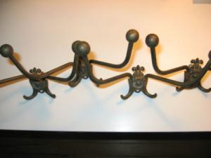Antique Brass Coat Hooks, Hardware, Ball Ends, Fleu-de-Lis Flower, Set of 4