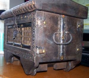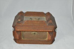 Antique Black Forest Wooden folk or Tramp Art jewelry trinket Box 4 tiers