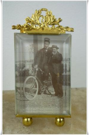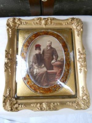Antique 1908 Sterrick Convex Bubble Glass Gilt Frame w/ 1880's Victorian Couple