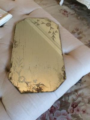 SHABBY Antique Mirror Display Etched Flowers Old DISTRESSED OLD