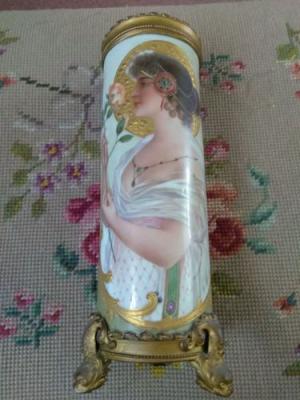ANTIQUE LIMOGES HP VASE DORE DOLPHIN MOUNTS GOLD GILT GORGEOUS LADY BUT AS IS