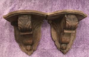 Vintage Hand Carved Wooden Corbels Wall Shelf Sconces France Country French