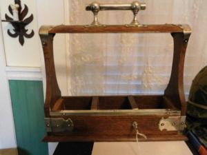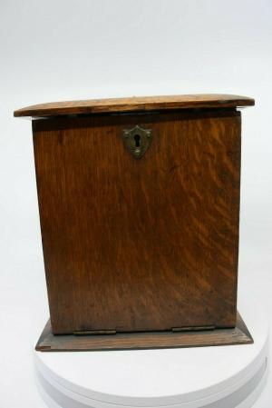 Antique Oak European Travelers Letter Box Writing Letter Lap Desk Silver Plate