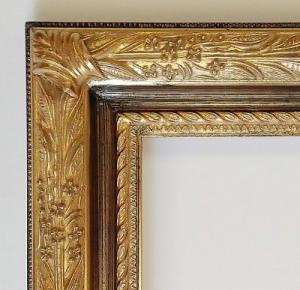 ORNATE ANTIQUE GOLD GESSO 3-PART FRAME WITH OAK LEAVES & ACORNS LARGE 19" X 17"