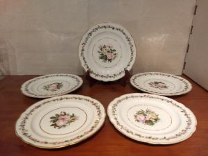 Antique P PRUDENT MALLARD France New Orleans PINK ROSES Porcelain 8" PLATES x 5