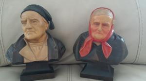 Vintage Pair of Folk art Carved detailed Wood Busts by M Schwalb Brienz