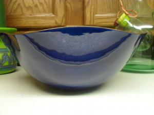 Vtg. Leon STATHAM signed Enamel and Copper Bowl Large and Beautiful and Blue
