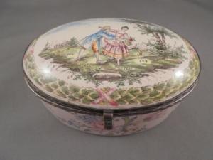 Old Antique French Faience Trinket Jewelry Box Courting Couple Scene Marked