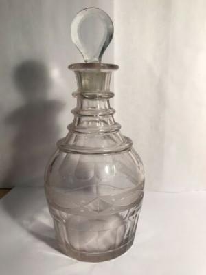 Vtg Cobalt Blue Cut to Clear Crystal Ships Decanter