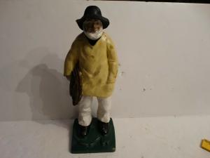 Antique cast iron old salt fisherman doorstop original paint large size 11 1/2"