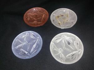 4 RARE ANTIQUE FRENCH ART CRYSTAL GLASS DRAGONFLY OPEN SALTS BUTTER PAT..COLORS