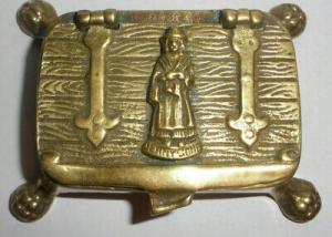 Antique Brass bronze stamp box Jenny Jones maiden Welsh Wales on 4 lion feet