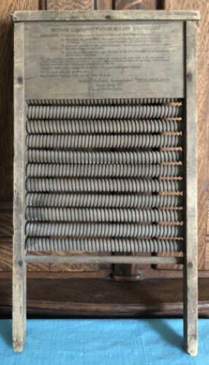 Antique Mother Hubbard''s Wooden Roller Wash Board Mendota, IL
