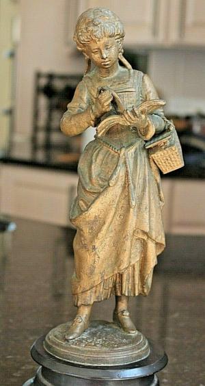 Antique GILT Victorian Metal Figurine ROMANTIC Student Writer Reader Teacher 13"