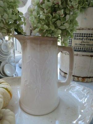 THE BEST Old Vintage WHITE IRONSTONE PITCHER Embossed Flowers Wm Adams ENGLAND