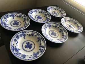 Antique 1872 SET OF 6 Mintons Minton Blue Delft Large Bowl Plates SIGNED