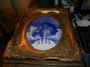 Antique Metal Picture Frame w/ Hand-Painted Porcelain Painting.