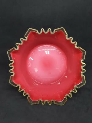 Antique Victorian Pink Cased Art Glass Brides Bowl Vaseline Ruffled Edge