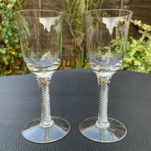 18th Century Georgian Single Series Air Twist Wine Glasses ca.1750''s Pair