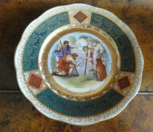 ANTIQUE ROYAL VIENNA AUSTRIA PORCELAIN CABNET PLATE GOLD CRUSTED TRIM