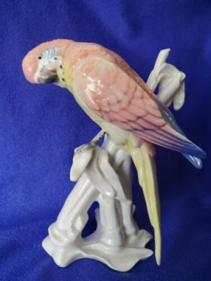Lovely Karl Ens Naturalistic Popinjay Pink Parrot Figurine #1