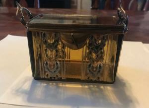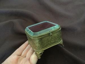 Antique Beveled Jewelry Casket Box Victorian Pocket Watch Glass Ormolu Trinket