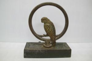 Antique Bradley & Hubbard Cast Iron Parakeet Bird in Ring Doorstop~Art Deco