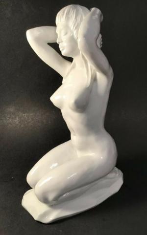 Kunstabteilung Sculpture #1041 Nude Parisian Woman 11” Kneeling Bisque Porcelain