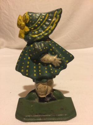 ANTIQUE SUNBONNET GIRL WITH BOW ON HAT CAST IRON DOORSTOP CIRCA 1920''s
