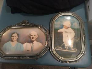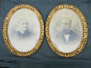 2: Vintage Antique Convex Bubble Glass Oval Frames with Man & Wife/Baby