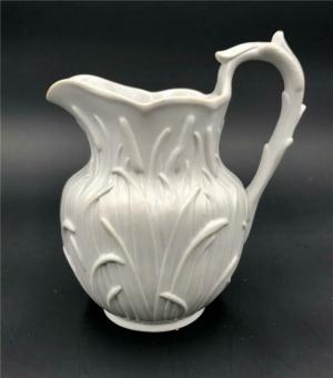 Ridgway & Abington Bulrush Jug Relief Molded White Stoneware Pitcher Ca 1848