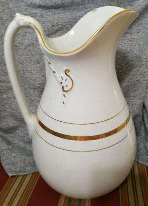 1870''s Union Pottery Co. Trenton NJ Porcelain White Decorated Water Jug