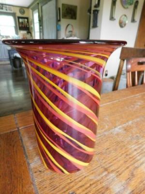 Vintage LG Hand Blown Art Glass Vase-Cranberry w/ Swirl Design-Signed Mark Wagar