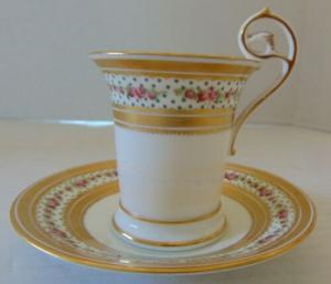 GILMAN COLLAMORE & Co. COALPORT DEMITASSE ROSES TEA CUP & SAUCER GOLD TRIMMED