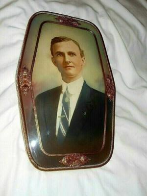 Antique Convex Bubble Ornate Brass Frame with hand tinted photo 10 x 15" VGUC