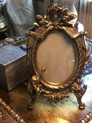 Vintage Victorian Cupid W/arrow Brass Picture Photo Frame Easel Ornate Lovers